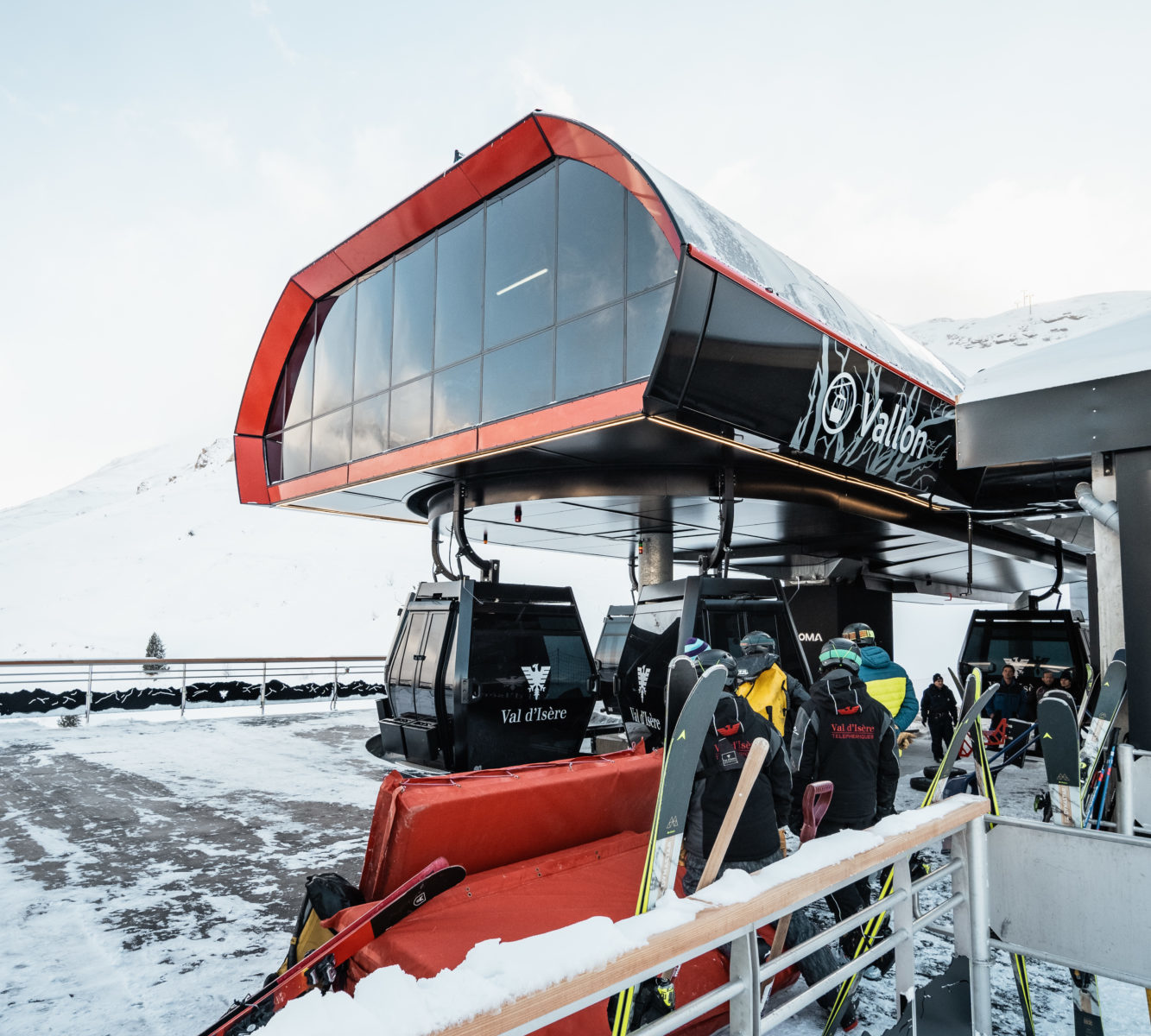L’équipe de GVC a fabriqué un ensemble de garde-corps en inox et acier peint ainsi que les portillons et les supports de ski pour le TC10 Vallon, à Val d’Isère.
